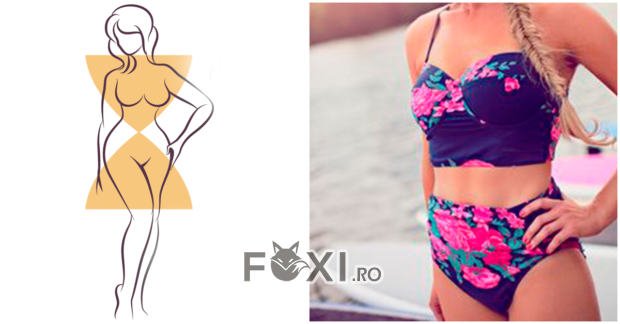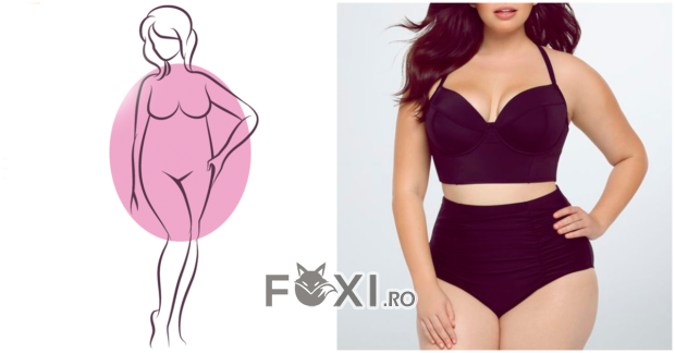 Acest lucru inseamna ca bustul si talia sunt mai proeminente decat soldurile si umerii. Cel mai important lucru atunci cand alegeti un costum de baie este sa selectati un sutien care sa va ofere sprijinul de care aveti nevoie. Incercati sa alegeti costume de baie cu bretele groase si care sa poata fi ajustate la gat. De asemenea, foarte recomandate sunt modelele de costume de baie cu pantaloni scurti cu talie inalta, in culori inchise, pentru a va modela silueta.